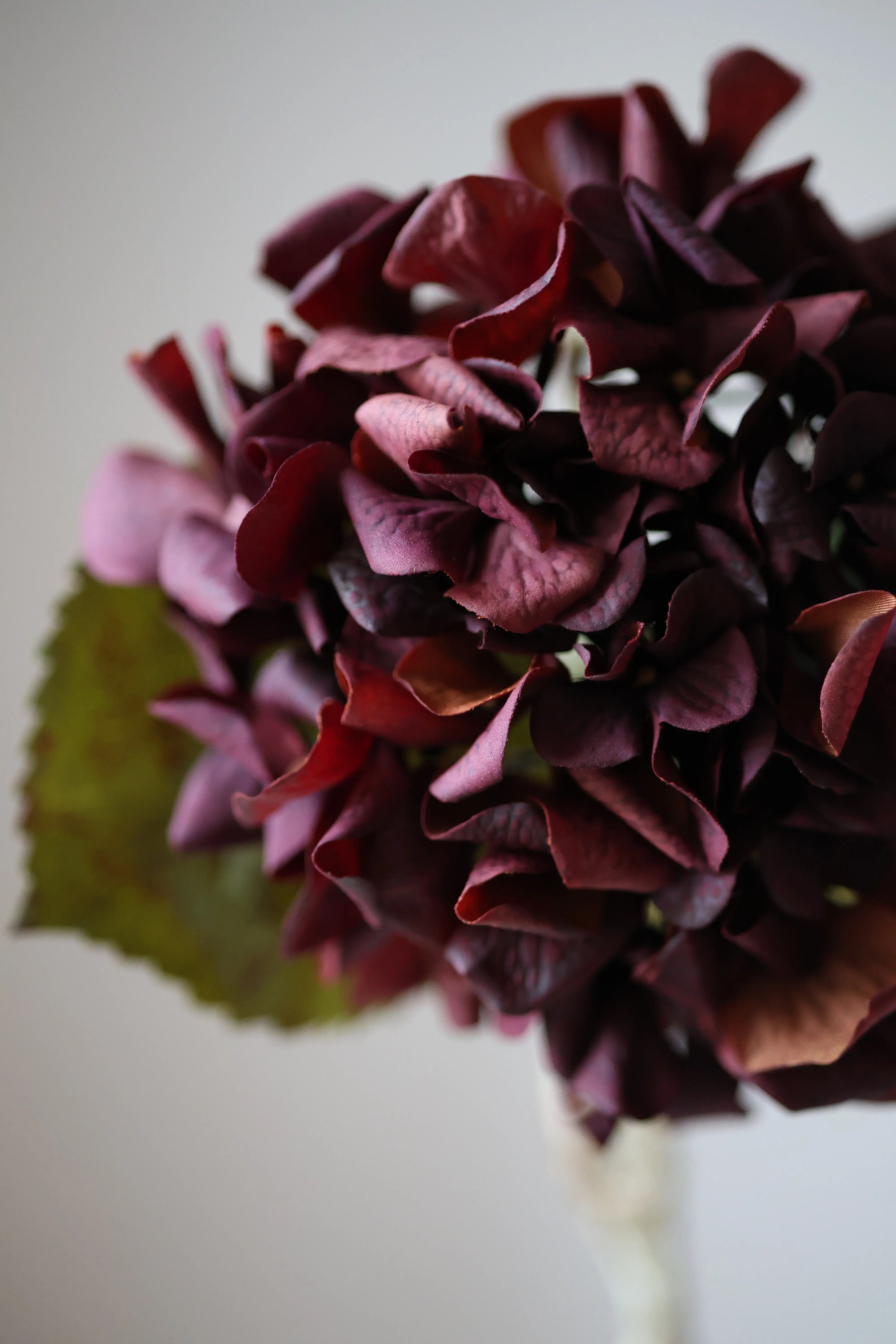 Ez a bordó, szárított hatású hortenzia különleges, vintage hangulatot kölcsönöz bármely térnek.