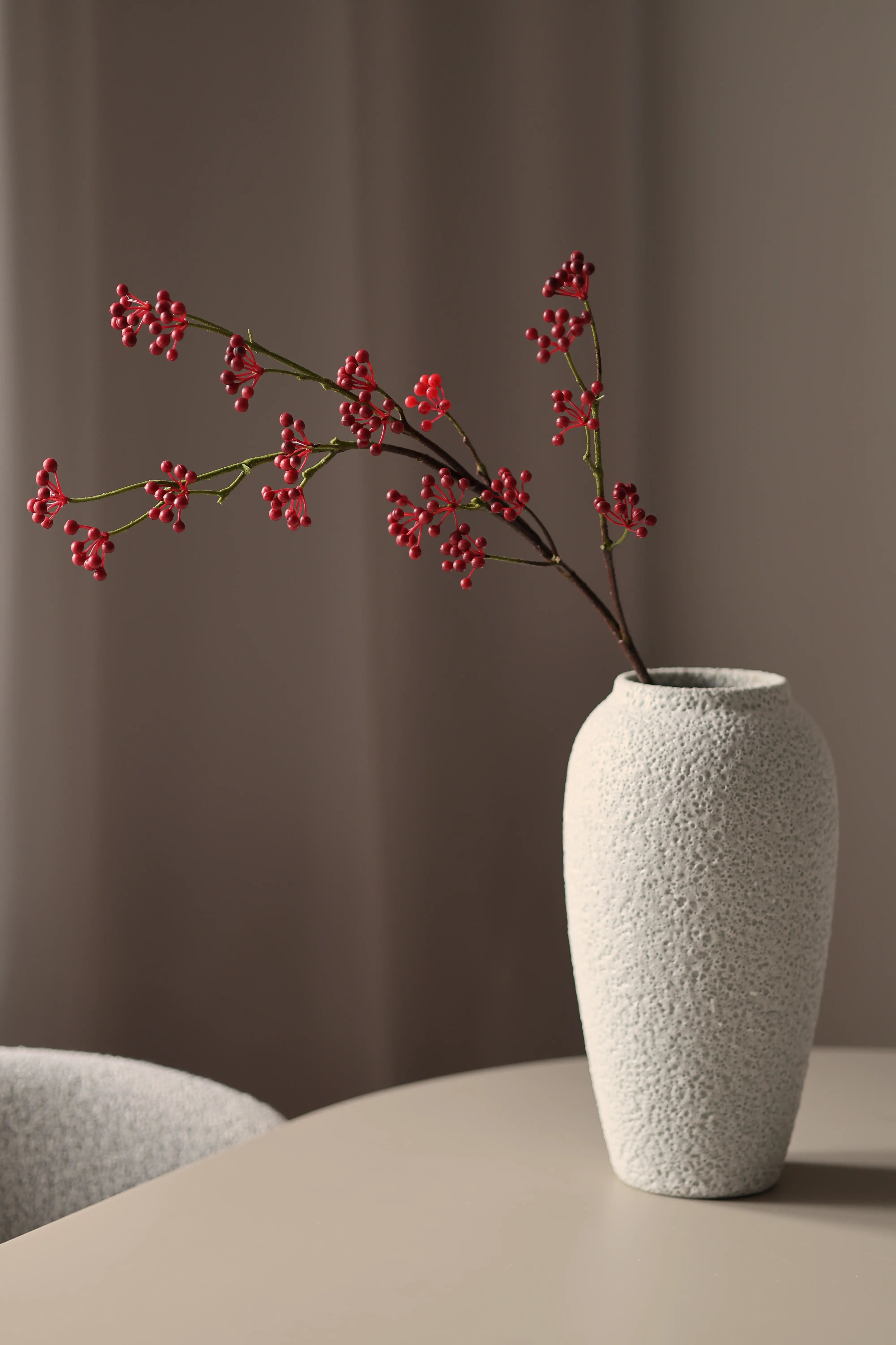 Piros bogyóág – egy apró, mégis nagyon hatásos részlet: mély, lila tónusa azonnal eleganciát és “boutique” hangulatot ad bármilyen dekorációnak. Szépen kiemeli a pasztell virágokat, de önmagában, vázában is letisztult fókuszpont. Tökéletes választás, ha egy kompozíciót gyorsan szeretnél gazdagabbá és különlegesebbé tenni.
