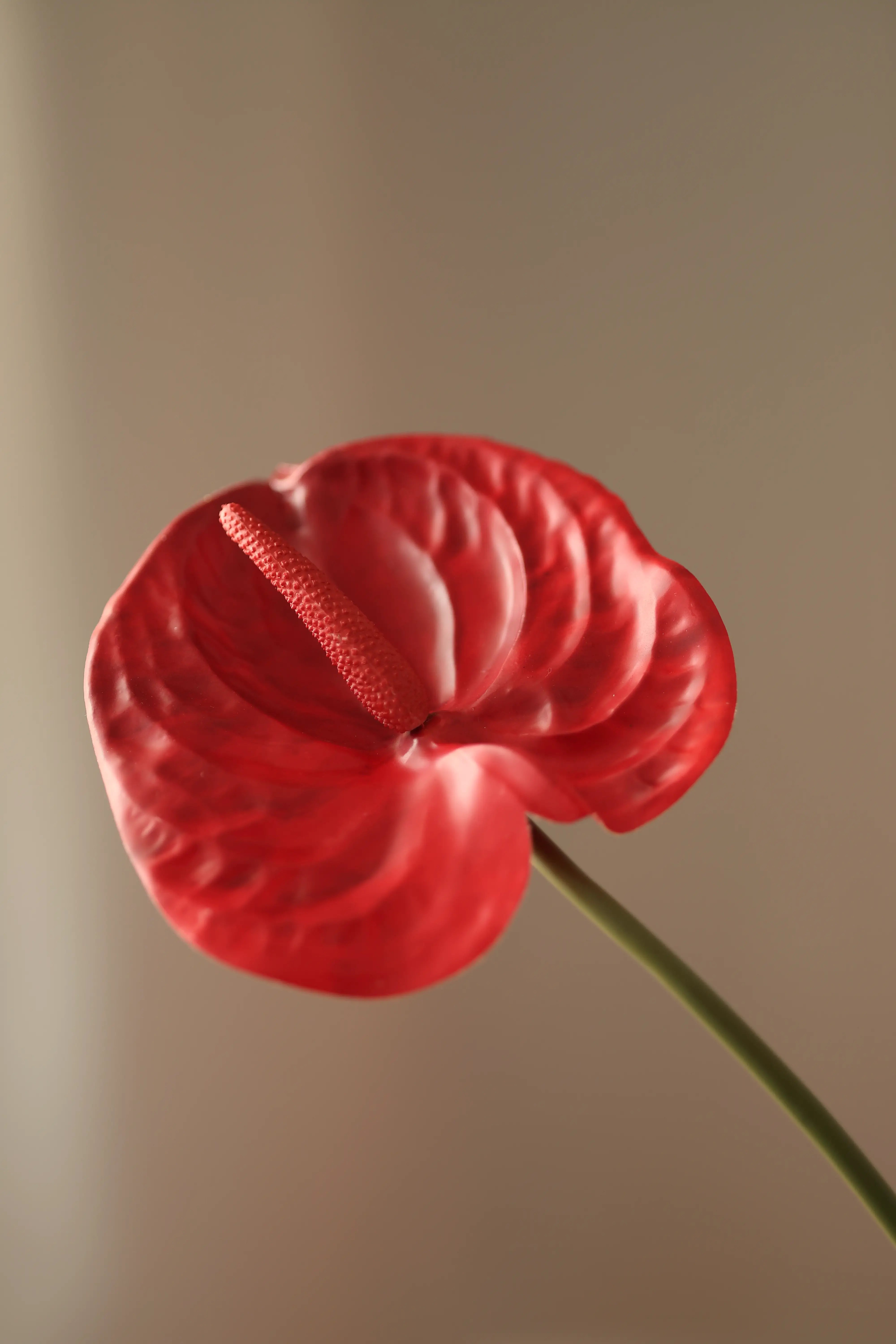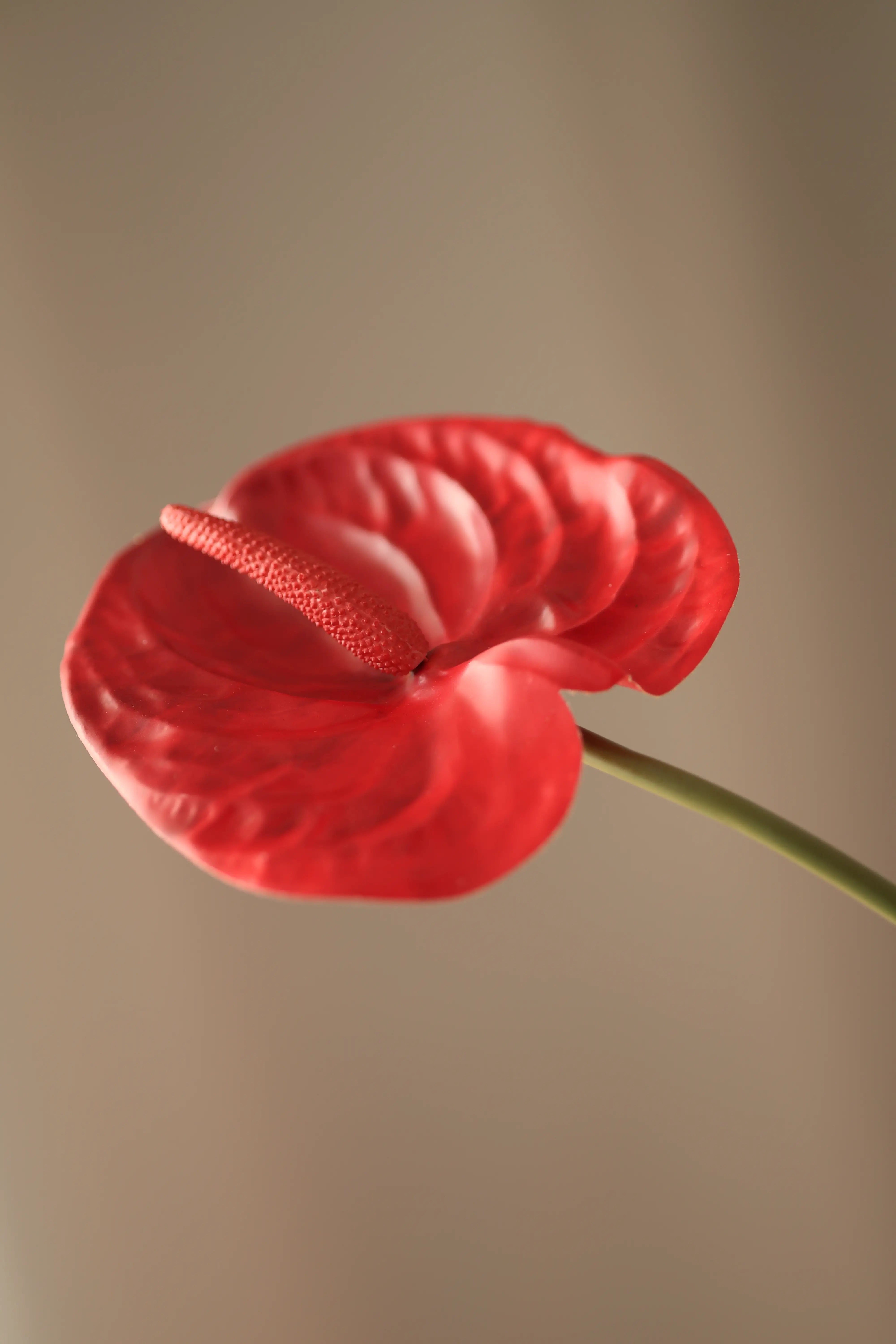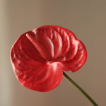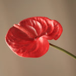 This pale green flamingo flower is one of my favorites – delicate, fresh, clean. The flower head has a waxy sheen, with just a hint of pink in the middle, which gives it an even more natural effect.