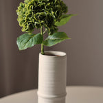 Két zöld levél kíséri, amik nem tolakodnak, csak szépen ellensúlyozzák a virág puhaságát. A szár 49 cm hosszú, nem túl merev, de elég stabil ahhoz, hogy bármilyen vázában szépen megálljon – például egy egyszerű, természetes kerámiában, mint a képen is.