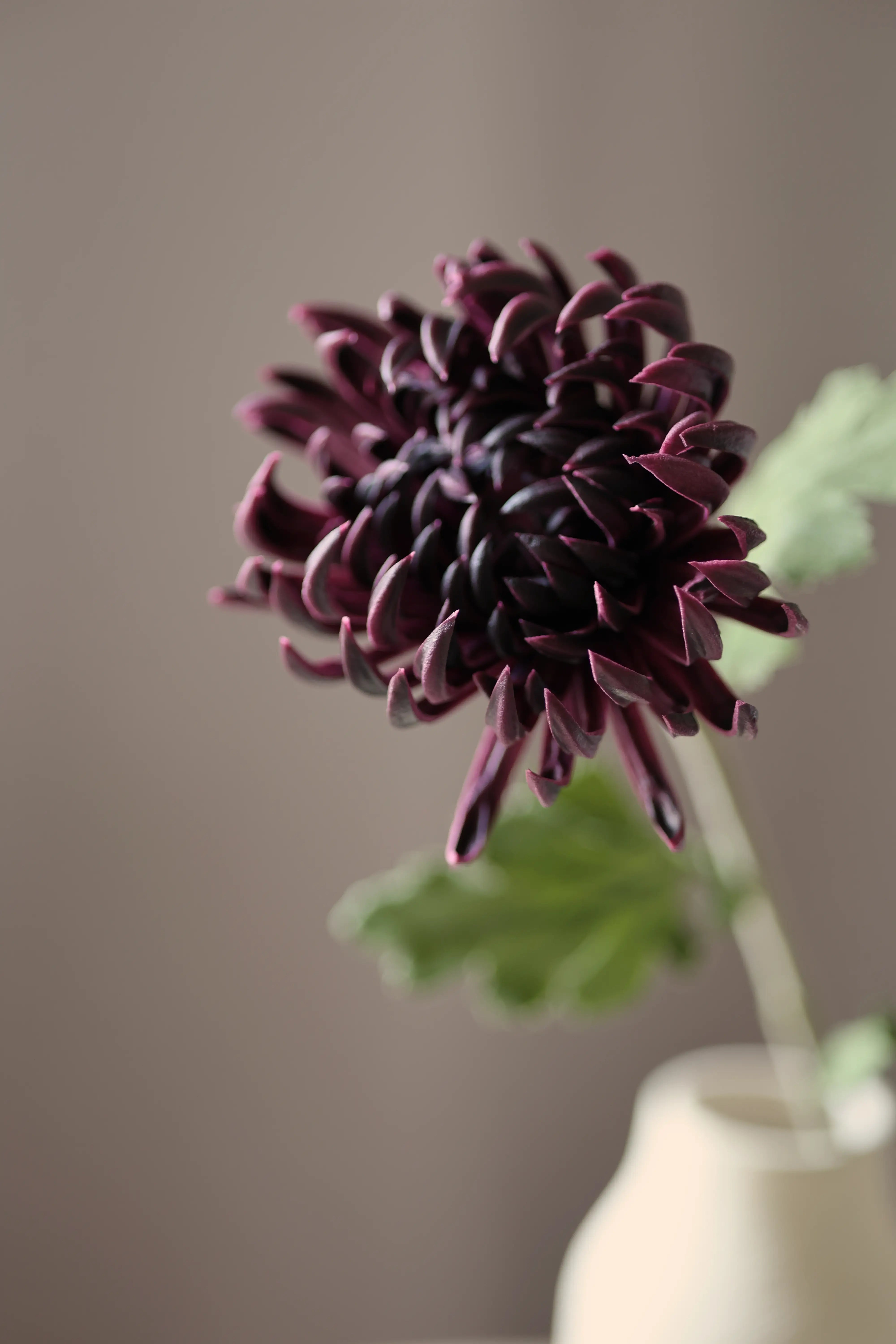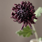 Ez a krizantém szál olyan, mintha egy őszi erdőből került volna be a nappaliba – különleges, természetes, mégis teljesen kortárs. A szirmok rétegzetten nyílnak, finoman befelé görbülnek, és a zöld árnyalatokat itt-ott meleg barnás tónusok egészítik ki – ettől lesz igazán izgalmas és élethű az összhatás.