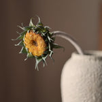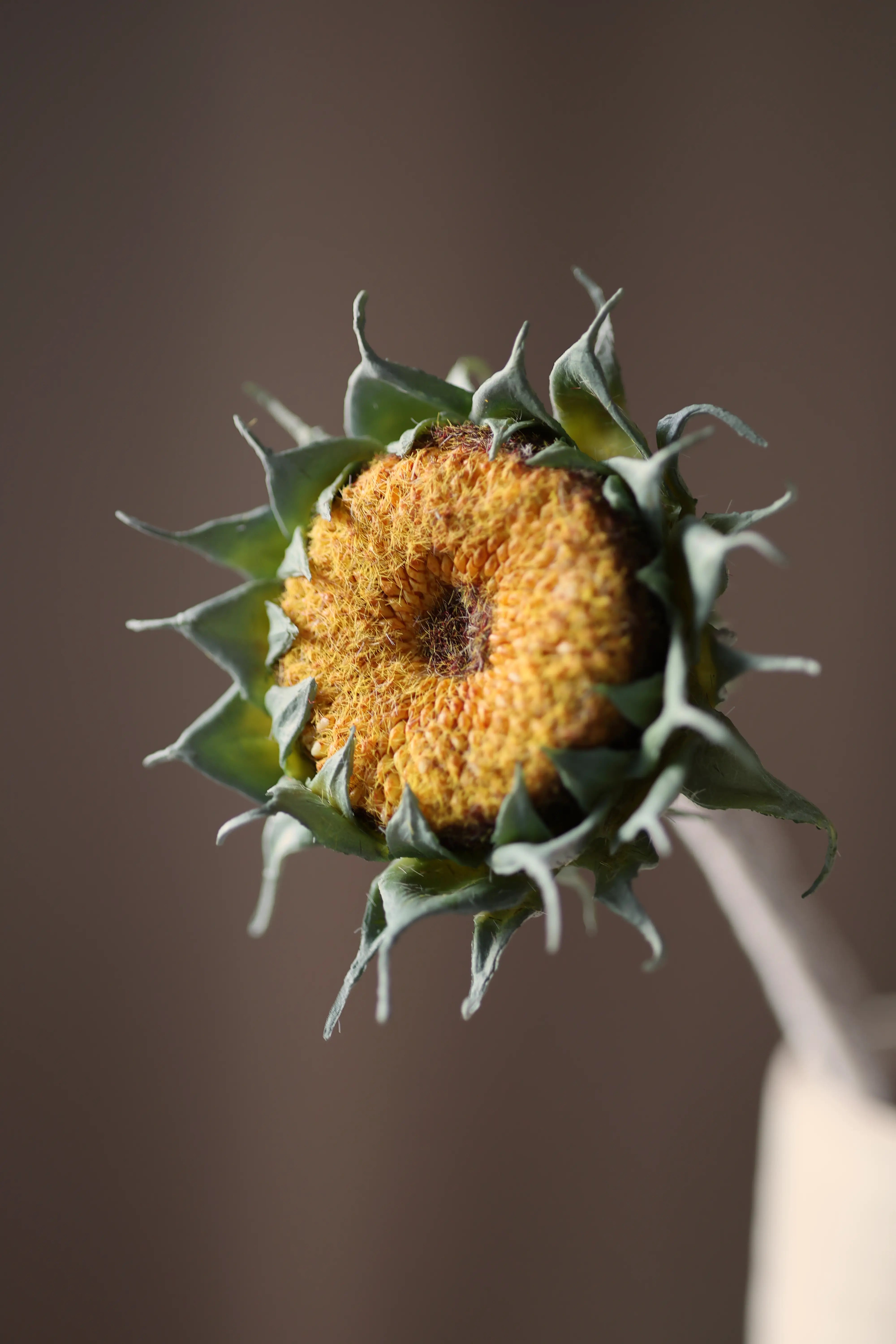 Az őszi napraforgó gazdag, mély aranysárga és meleg barnás tónusaival a napfény és a természet erejét hozza be a térbe. Valódi érzetet keltő, „real touch” felülete tapintásra is élethű, szirmai és levelei finom textúrával és részletgazdag kidolgozással készültek. Erős, természetes hatású szára stabil tartást biztosít, így könnyen elhelyezhető vázában vagy nagyobb kompozíciók részeként. Tökéletes választás az őszi szezon hangulatának megidézésére – meleg, barátságos és mégis elegánsan természetes.