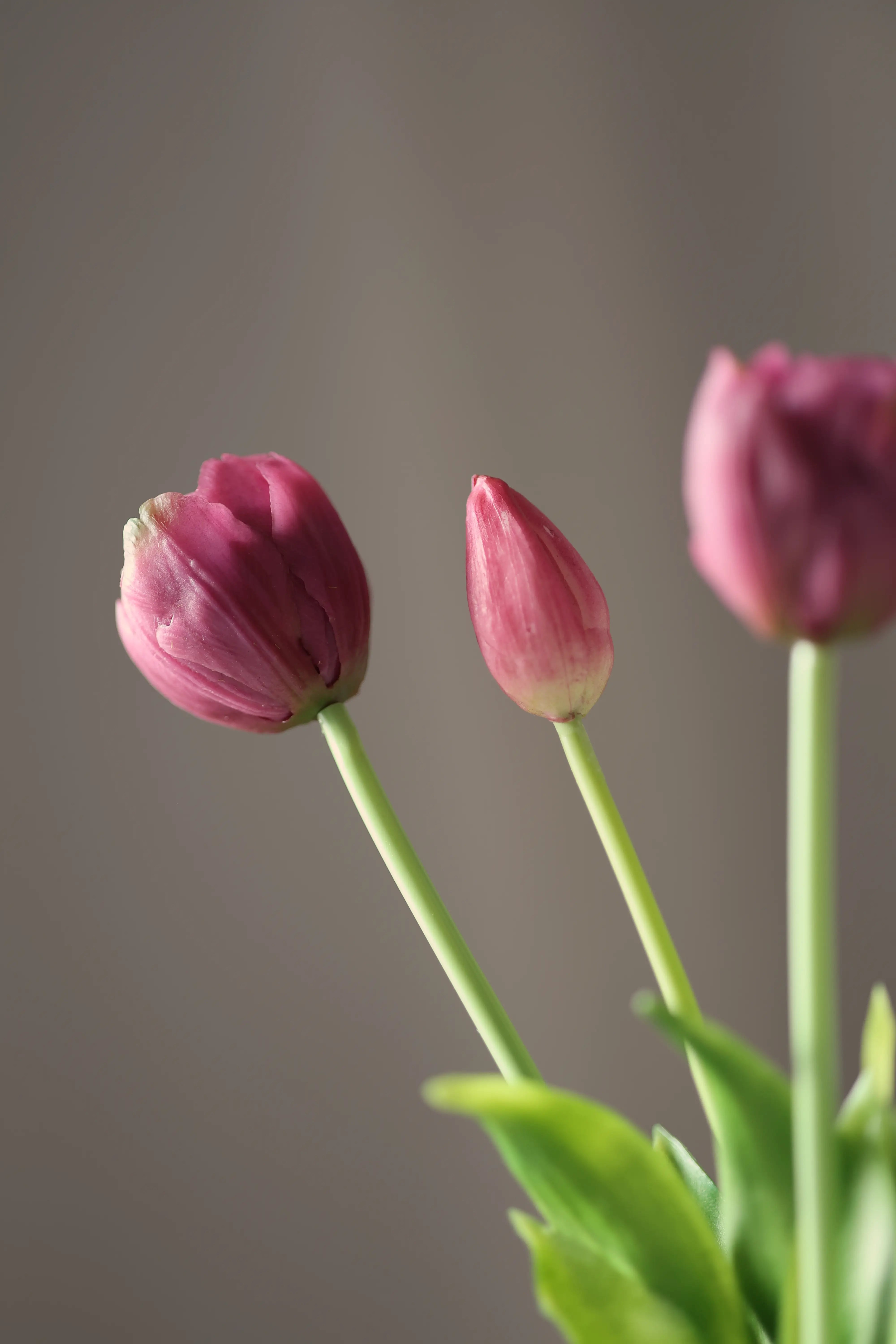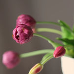 A csokor 5 szálból áll, de nem teljesen egyforma virágokból – és pont ettől lesz igazán természetes hatása. Van benne 2 szál bimbós tulipán, 3 szál, ami éppen nyílni kezd, és 5 szál teljesen kinyílt virág. Így úgy néz ki, mintha csak most hoztad volna be a kertből, vagy egy reggeli piaci séta után kötötted volna össze.